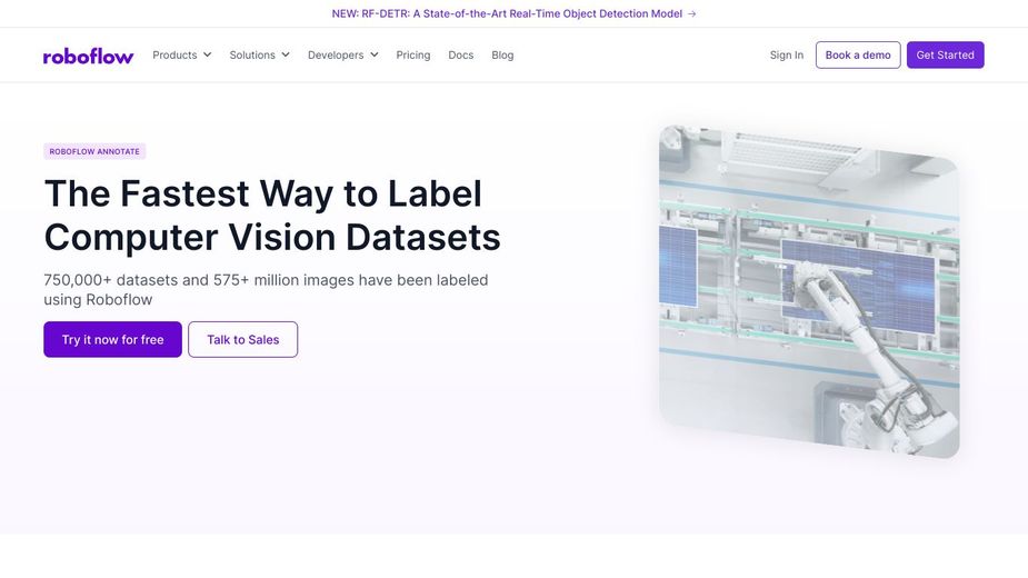 RF-DETR,高性能实时对象检测模型,COCO数据集上实现60+ mAP。提供base和large两种尺寸,适应不同计算资源。包含训练与部署工具,支持GitHub、Colab及Roboflow Train服务。配备AI辅助标注工具,高效完成多边形标注、标签辅助及自动标注。管理分析工具优化数据集质量,支持多样标注任务及团队协作功能,全面助力计算机视觉模型构建与高效运行。