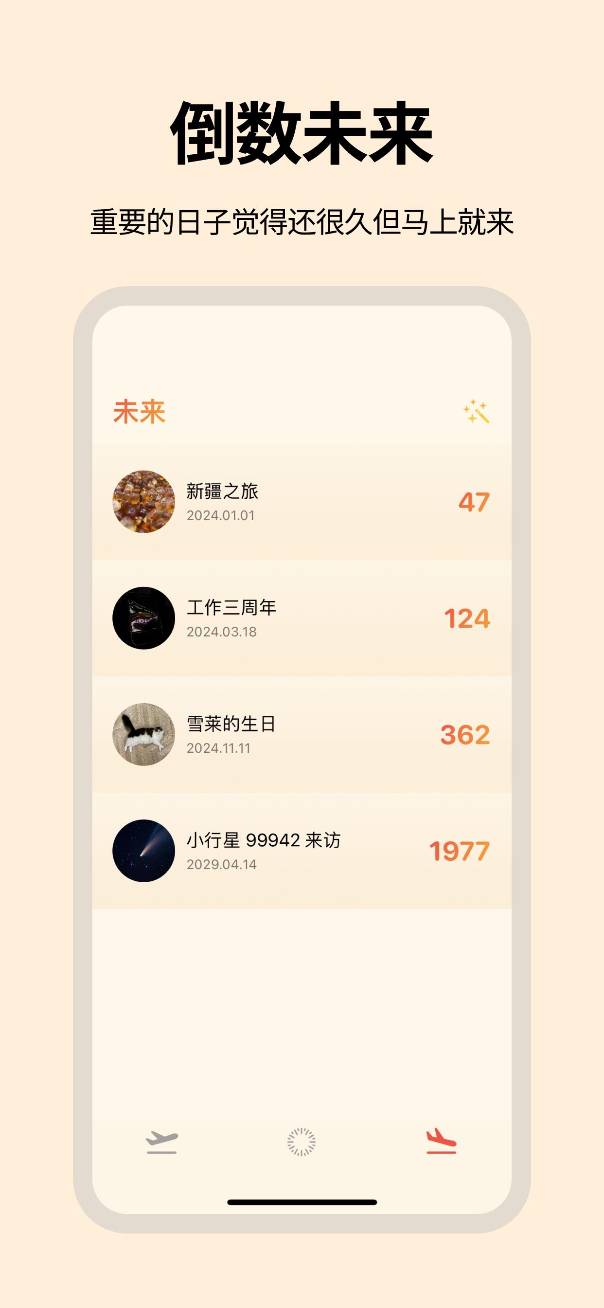 没有乱七八糟的功能,没有广告和小红点,只有你的重要日子。