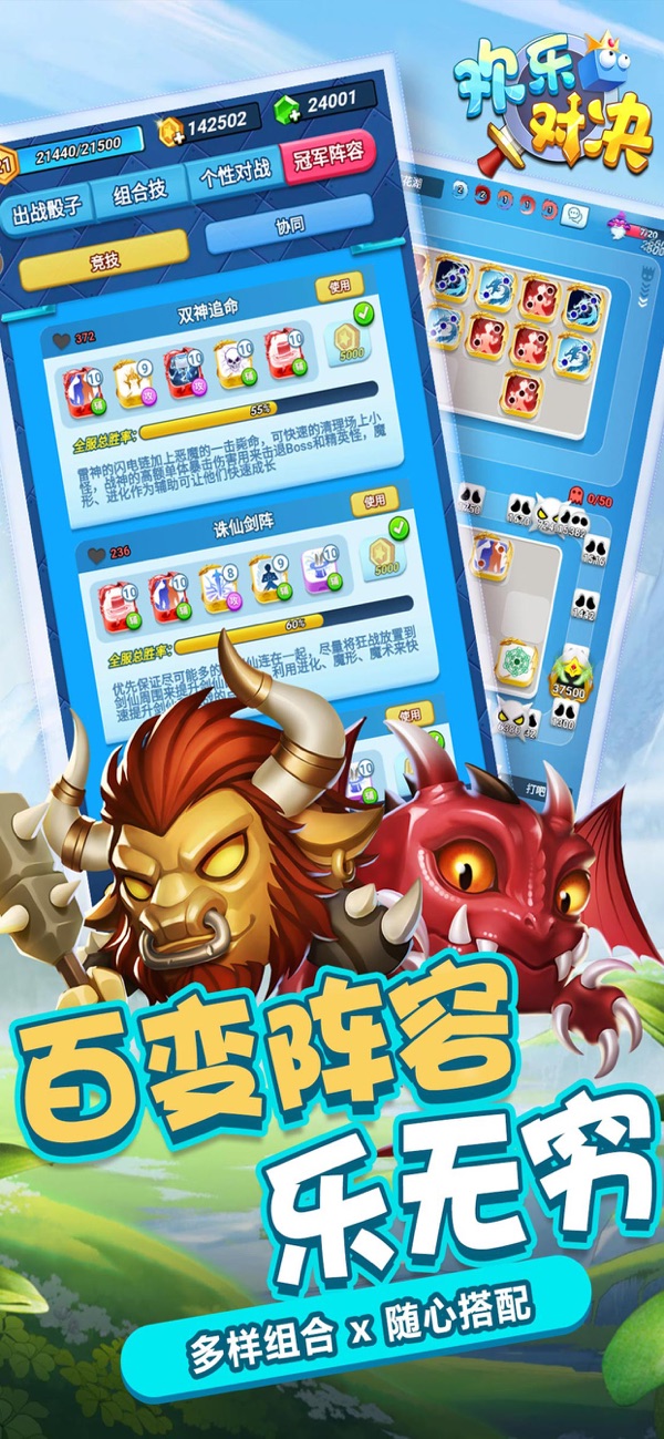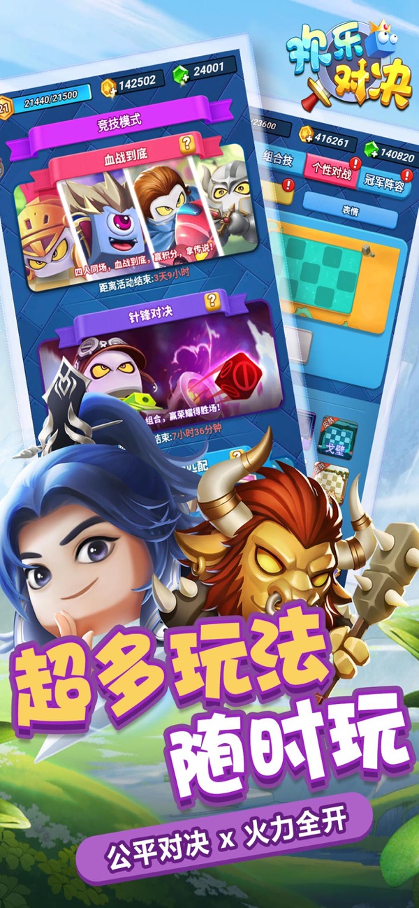《欢乐对决》是一款融合塔防、卡牌、对战的休闲竞技手游。玩家部署5个布洛克战士防御敌人入侵,通过放置合成与塔防结合,体验乐趣并思考判断。有公平竞技、实时激战玩法,多样布洛克随心搭配,组合技有额外加成。还有合作模式、轻松解压3分钟一局、随机合成易操作、超爽福利每天十连抽、多样玩法任你选等特点,快来体验这场玩法盛宴。
