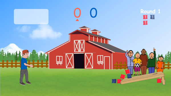 One Player Mode - See how many points you can score in two minutes, throwing 8 bags per inning.