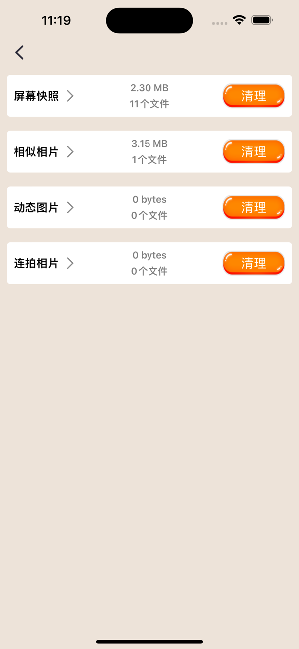 使用它,你可以快速清理相册中的截图、相似图片、动图、大视频、小视频,以及删除重复的联系人和空缺的联系人。
