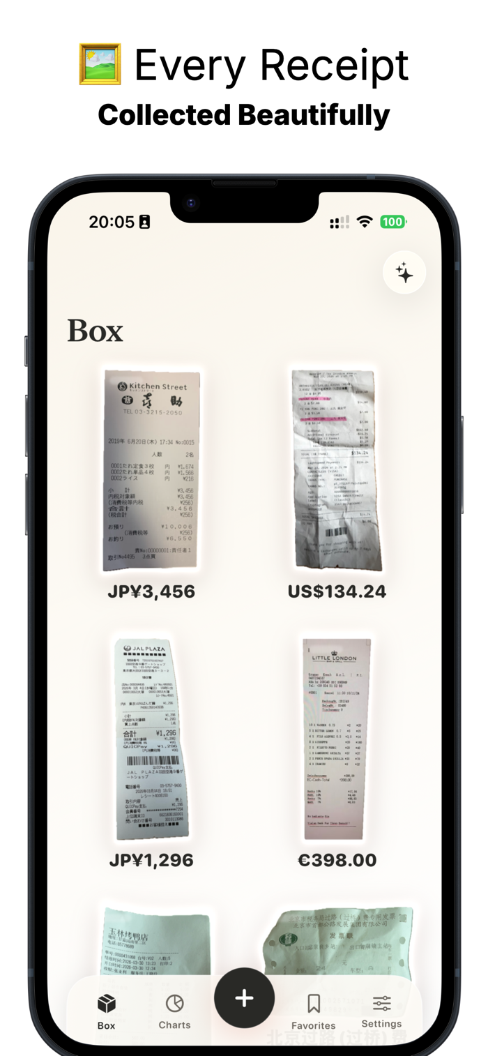 CapTickets 是一款以“收藏感”方式整理收据的小票应用。拍下或导入小票后,App 会自动识别商家、金额、日期等信息,并以更精致的方式保存下来。你可以像整理贴纸和剪贴簿一样收藏每一张收据,也可以通过图表和 AI 问答快速回顾自己的消费记录。
