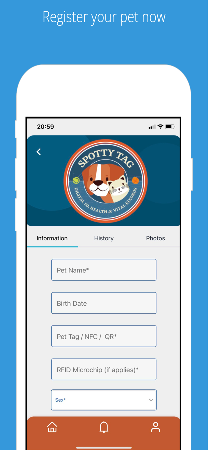 SPOTTY TAG设备刻有NFC芯片和二维码,还有唯一序列号印在标签一侧。在移动应用“搜索宠物”选项中手动输入序列号,或用移动设备扫描芯片或二维码,就能自动进入SPOTTY TAG移动应用平台数据库,获取宠物的图像、重要数据等数字识别信息。宠物丢失时可发布通知,让当局、兽医诊所和公众了解其状况。