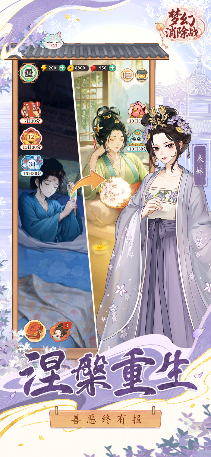 《梦幻消除战》是一款古风合成经营手游。核心玩法包括合成经营,如用三片嫩叶合成特级龙井等,百款唐宋风格家具自由搭配打造茶楼;绮遇情缘,邂逅温润茶道大师等,缘分暗藏机遇助力商业扩张;谜案追踪,从落魄千金到商界女杰,抽丝剥茧探查灭门真相;古韵风华,有精致古风场景还原古代盛景。游戏特色有轻松治愈玩法、高自由度经营系统、多线情缘故事及持续更新的主题家具服装。