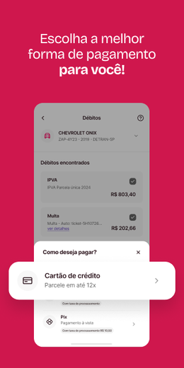 Zapay让您轻松在家检查车牌、所有债务(如IPVA 2025、罚款、迟交许可费等),一切尽在掌握。我们提供快速、安全、可靠的100%数字化服务,包括汽车保护和购买通行标签,让您无忧出行。选择最适合的支付方式:最高12期分期付款、PIX或一次性支付。Zapay是巴西Detrans的官方合作伙伴,确保数据更新和安全,覆盖所有州。超过250万驾驶员信赖Zapay进行车辆检查、许可安装及迟交罚款处理。