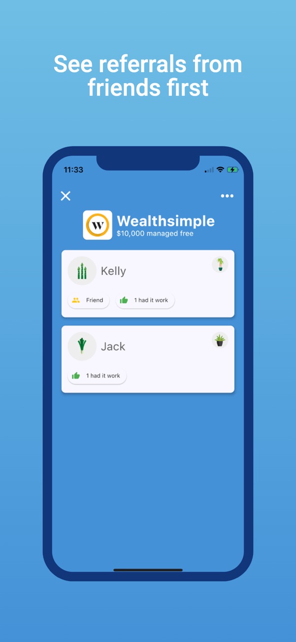 Choose to make your referrals visible to the larger community or just your friends that you add in the app, and you will always see referrals from your friends first (They'll thank you later).