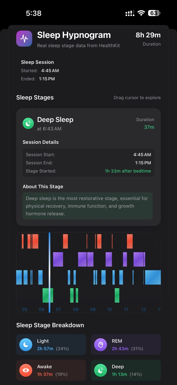 Fit Rest 是一款终极健康与健身追踪应用,可将 Apple Health 的 HealthKit 数据转化为可执行的健康洞察。追踪睡眠质量、监测压力水平、分析心率与 HRV、记录饮水和生命体征、追踪运动并保持活跃。通过 HealthKit 兼容 Apple Watch、Fitbit、Garmin、Oura Ring、Whoop 等设备。