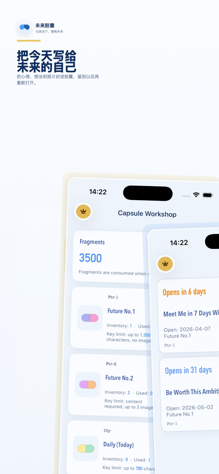 - 写日记、写给未来的信、给重要的人留话,支持不同胶囊类型