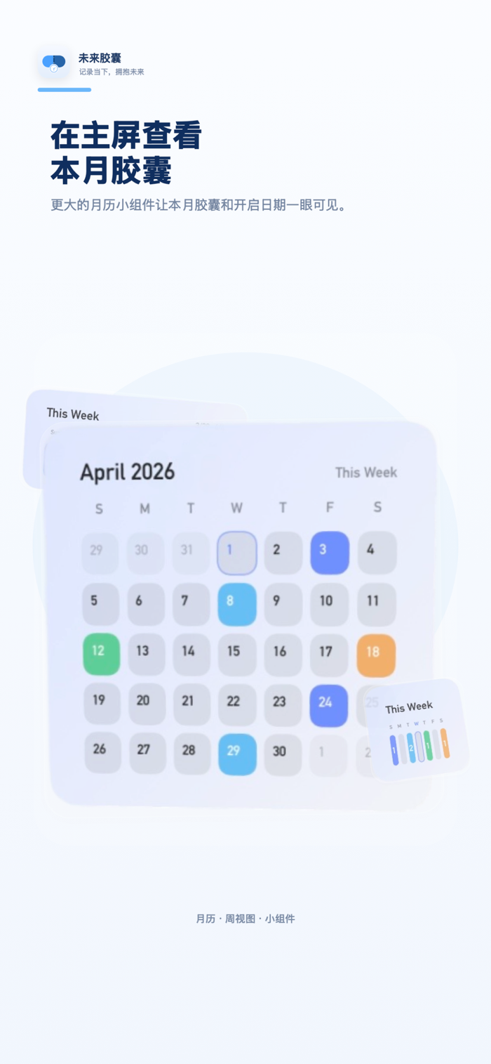 - 通过周视图、月历和倒数查看哪些胶囊即将开启