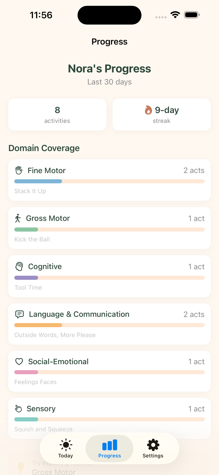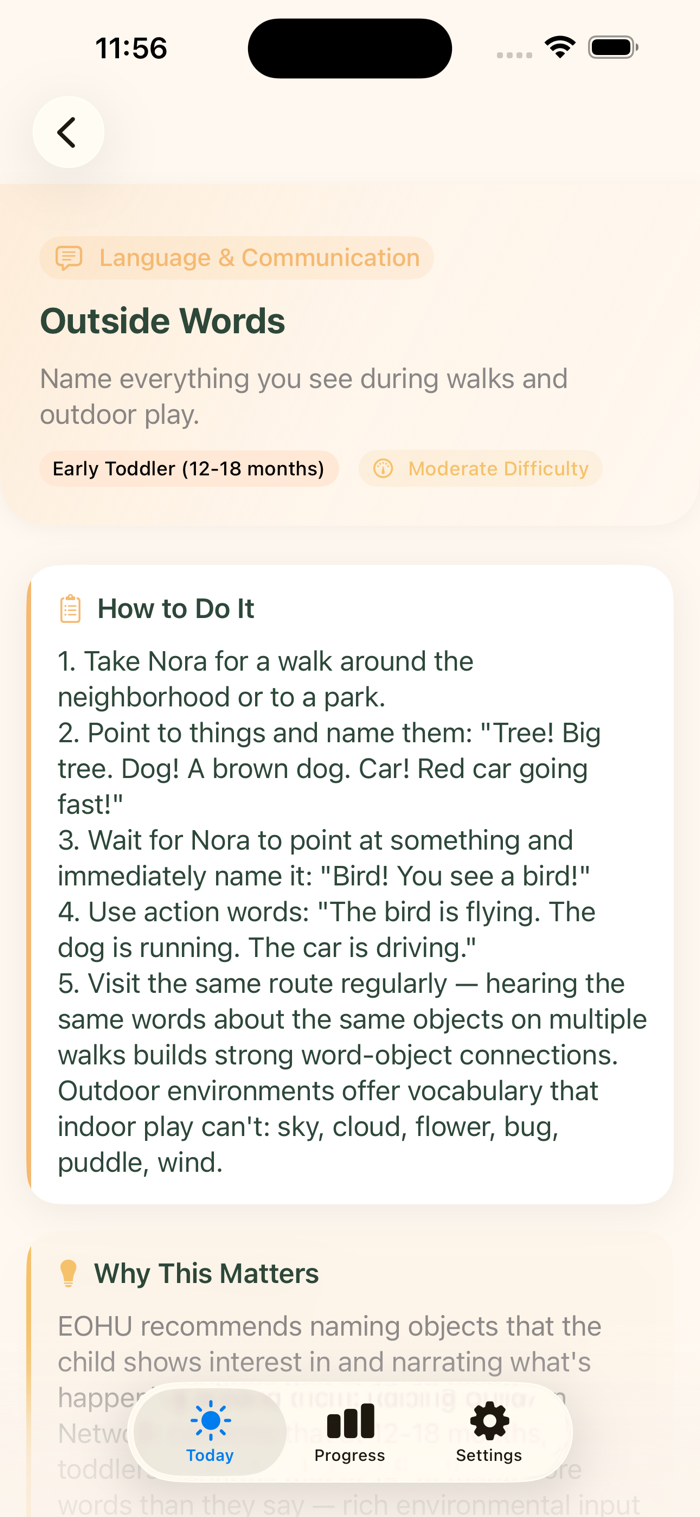 TinySteps gives you one research-backed developmental activity each day, personalized to your