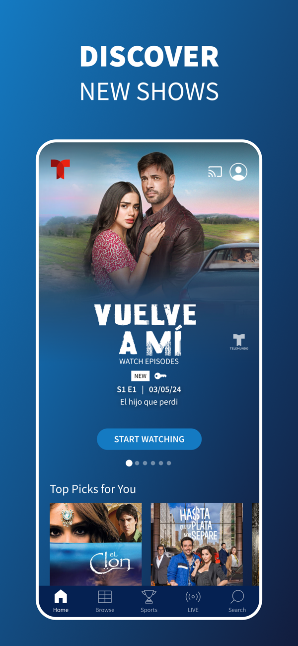 Telemundo is the best app to watch TV series and telenovelas in Spanish from all genres: narco series, romance, comedy, drama, biographical series, Mexican novelas, Colombian novelas, old telenovelas, Turkish dramas.