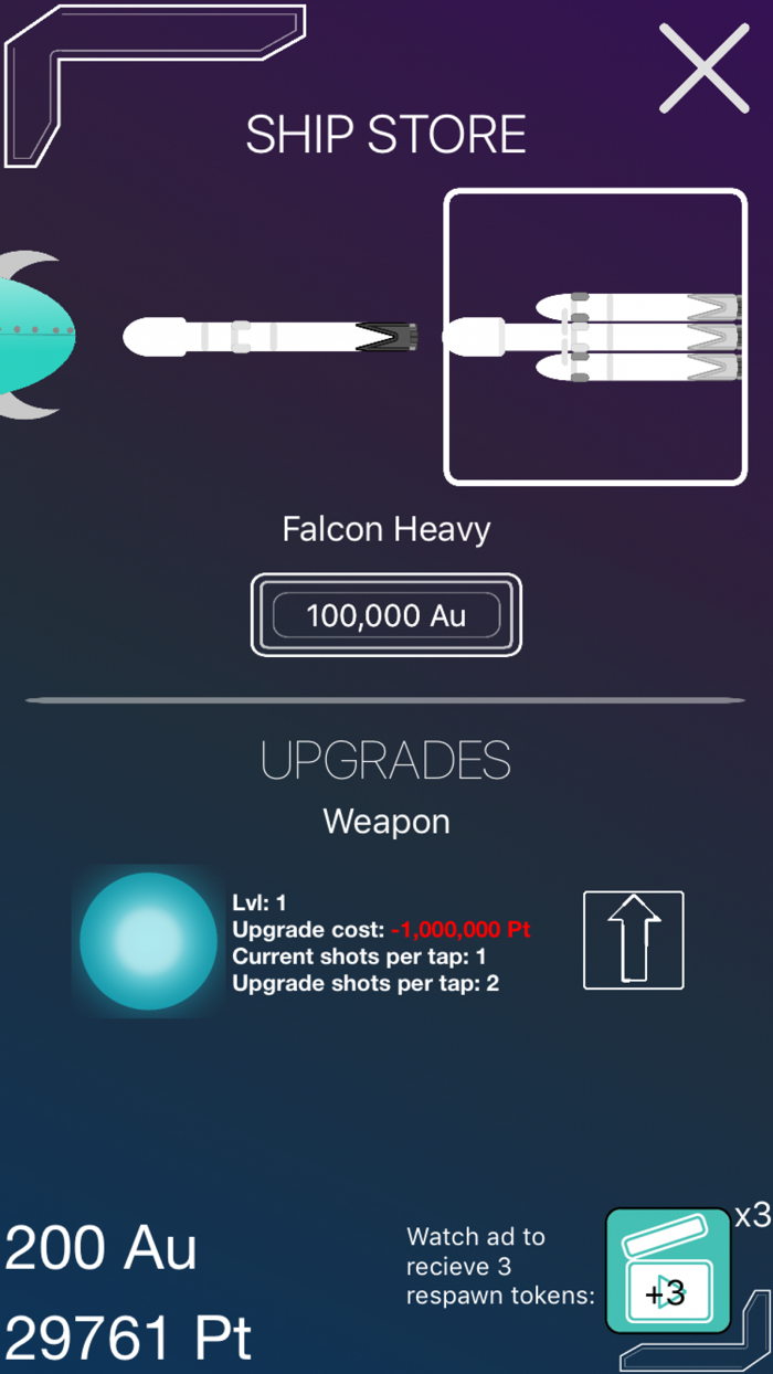 Embark on a cosmic adventure, traveling through the universe to discover solar systems and fend off enemies. Place drills to expand mining infrastructure, accumulating platinum and gold for upgrades like drill and weapon upgrades, or to buy new ships such as Falcon 9, Falcon Heavy, Gyra, Ship of Imagination. Features include exploring an infinite universe with a map that expands as you go and marks your path, along with the ability to purchase new ships, drill for minerals, fight enemies, and upgrade weapon and drill.