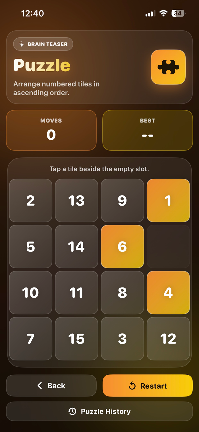 - Category-wise History for Snake, Puzzle, Sudoku, Tic-Tac-Toe, and Tetris